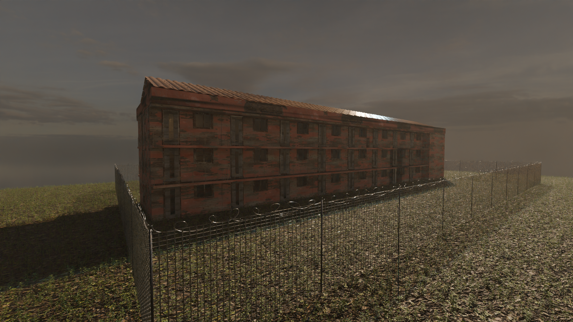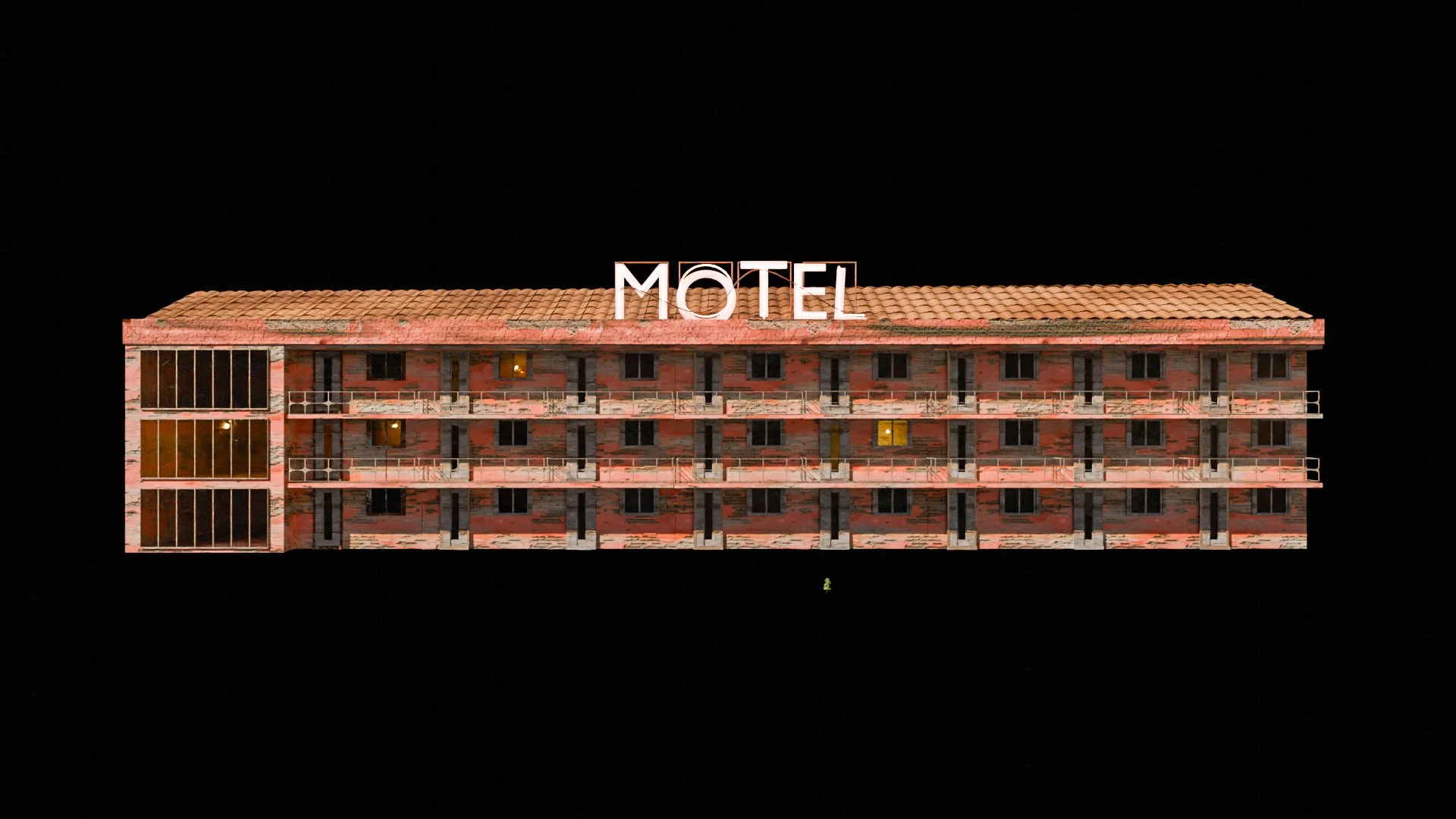 I kept the modular approach in mind for the motel’s structure—balconies, rooms, and walls are all designed to be reused or easily adjusted. The fence and barbed wire were made with mid-poly geometry and instancing to keep things light.